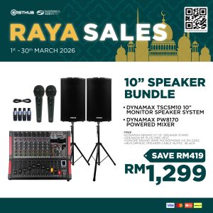 (Raya Offer 2026) Sound System Set A – DYNAMAX 10″ Speaker + PW8170 Power Mixer (Free 2 Mic, 2 Speaker Stand)